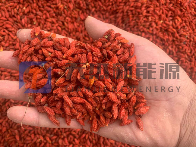 烘干枸杞三階段為降速烘干階段。當枸杞含水降到需定數(shù)值(30%左右)后,果內(nèi)的導(dǎo)熱性變小,內(nèi)外溫差增大,當室內(nèi)熱空氣達到55℃-60℃時,由于枸杞水分越來越少,水分的外移蒸發(fā)速率下降,水分滲出緩慢,所以還需相當?shù)臅r間來緩慢排出。