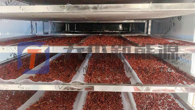枸杞烘干機烘干工藝總結(jié):新鮮枸杞處理后擺上托盤送入烘干機后,35-40度保溫2-3小時;升溫到40-45度保溫8小時、升溫到50-55度保溫8小時、共18-20小時。該方法是一種溫和的烘干方式,接近自然烘干,有利于保持枸杞的品質(zhì)和色澤,物料等級高。
