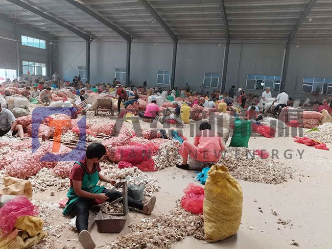 剝蒜:大蒜有辛辣味,不能用手工剝大批量的大蒜,批量剝大蒜使用大蒜脫皮機(jī),蒜瓣在沒有損傷的情況下自然去皮。然后人工對(duì)去皮后的蒜瓣進(jìn)行再次挑選,剔除發(fā)霉或變質(zhì)壞死的蒜瓣,進(jìn)行清洗。