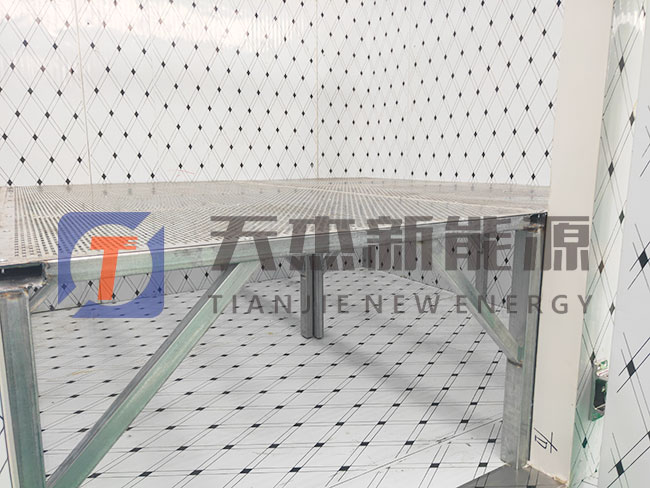 花椒烘干池底部留空60-80cm高,下部做鋼架承重,并鋪設沖孔板(或是不銹鋼絲網(wǎng));