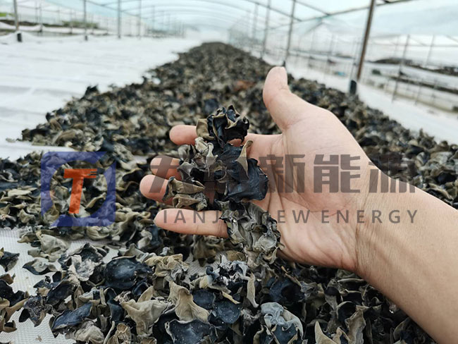 5. 恒溫保持5~8小時(shí)后將木耳烘干機(jī)溫度升55℃-60℃后整體烘干;黑木耳烘干八成時(shí),取出烘篩攤晾2小時(shí)后繼續(xù)烘干,待全部黑木耳烘干后即結(jié)束。