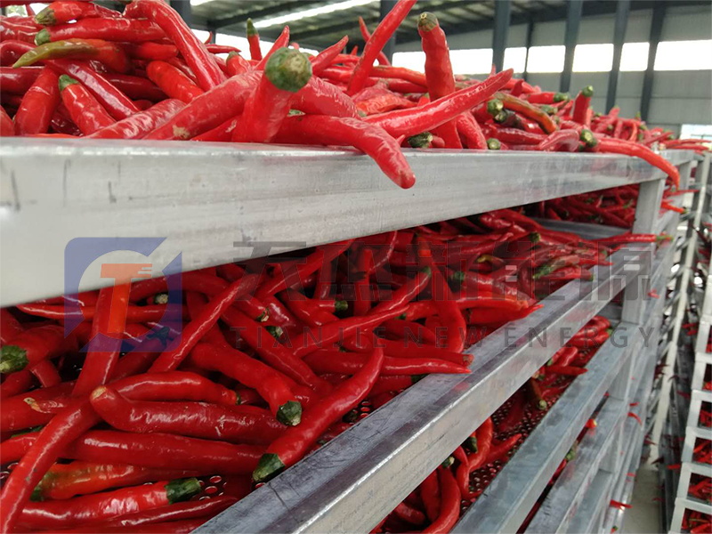辣椒推入烘干房之后,我們根據(jù)不同的烘干要求,設(shè)置相應(yīng)的烘干參數(shù),同時(shí)在烘干過程中根據(jù)實(shí)際情況,做出相應(yīng)的烘干調(diào)整。辣椒烘干過程不需要進(jìn)行翻動(dòng),直到烘干完成。烘干一批次之后,進(jìn)行下一批次的烘干。這種適用于家用,種幾畝地的農(nóng)戶。