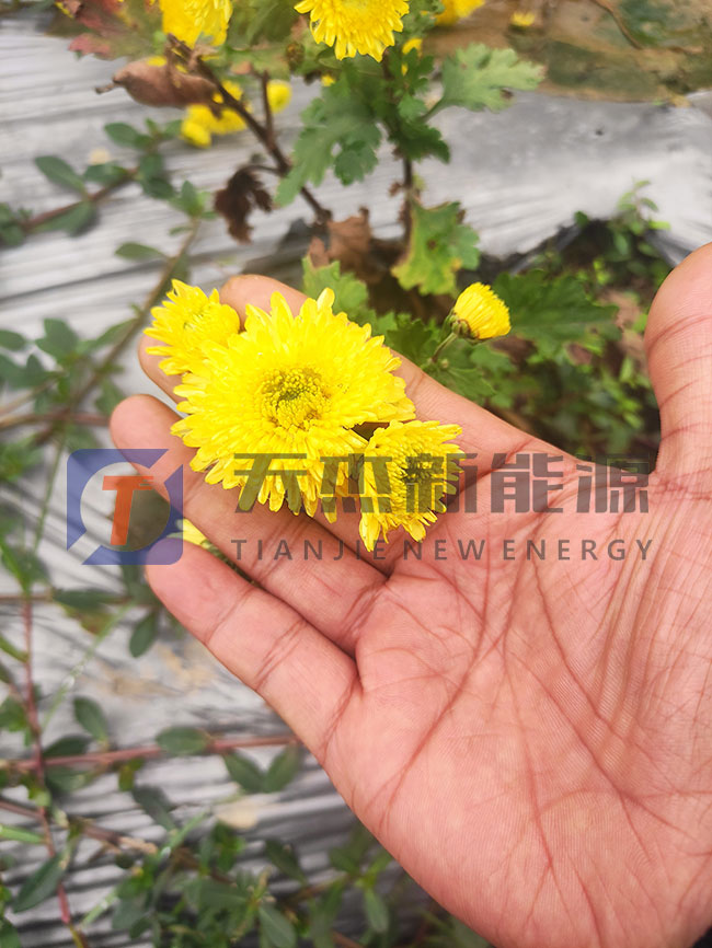 烘干好的菊花等待一下稍微冷卻一些后推出菊花烘干機,然后包裝入袋。